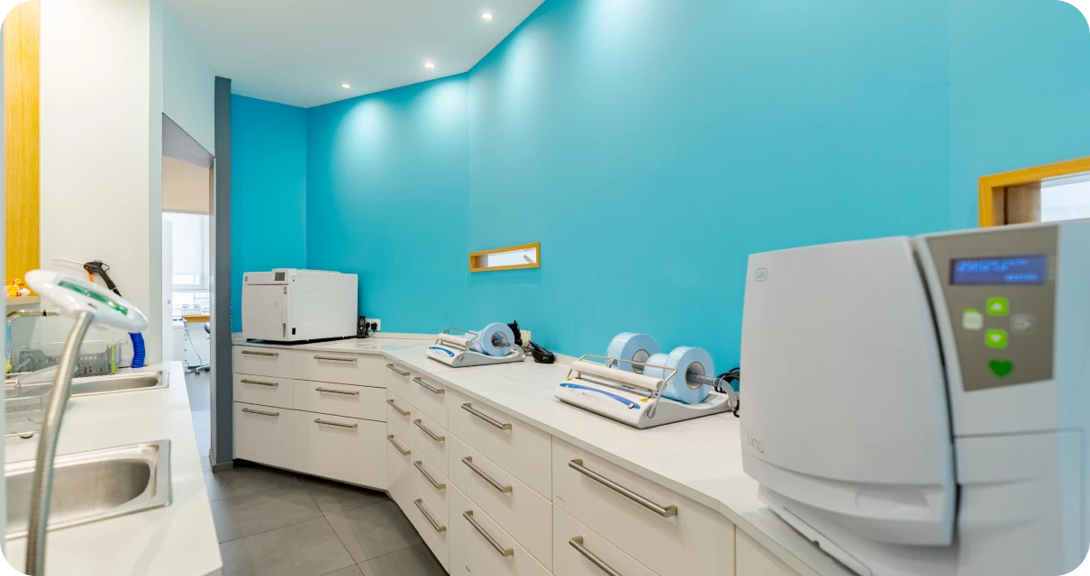 La salle de stérilisation est organisée selon un protocole strict de désinfection et de traçabilité. Chaque instrument suit un circuit sécurisé, conforme aux normes en vigueur. Cette rigueur garantit un environnement de soins fiable et maîtrisé.
