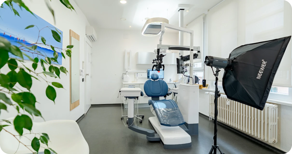 Le studio photo intégré permet de documenter chaque étape des soins. Les clichés cliniques facilitent l’analyse esthétique, la communication avec le patient et le laboratoire. Ils assurent également une traçabilité précise du parcours thérapeutique.